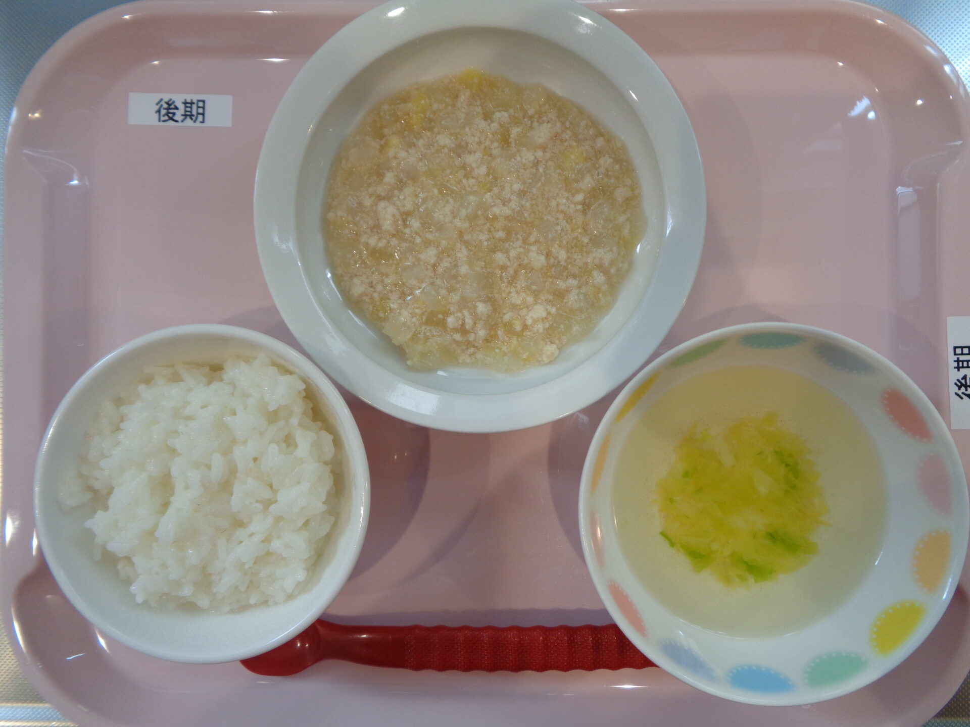 2025.01.09 給食写真 2025年1月9日 給食 【普通食】 ご飯・具だくさん煮物竹輪とわかめの酢の物・かきたま汁 【離乳食・後期】 軟飯・具だくさん煮物・キャベツのすまし汁 【離乳食・中期】 お粥・具だくさん煮物・キャベツのすまし汁 一覧へ戻る