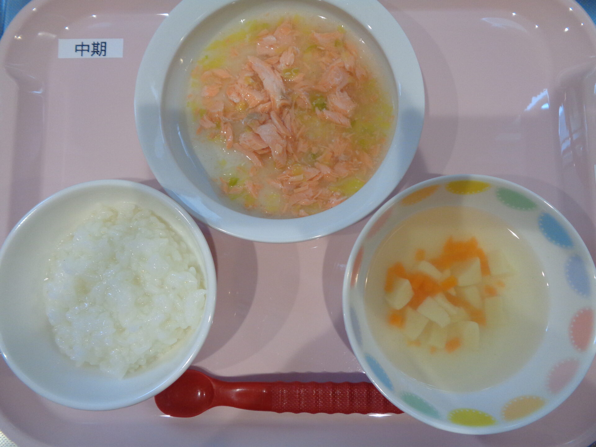 2025.01.16 給食写真 2025年1月16日 食育メニュー(北海道) 【普通食】 ごはん・さけのちゃんちゃん焼き・かにかまと春雨の酢の物・たまごのすまし汁 【離乳食・中期】 おかゆ・鮭の煮物・野菜スープ 一覧へ戻る