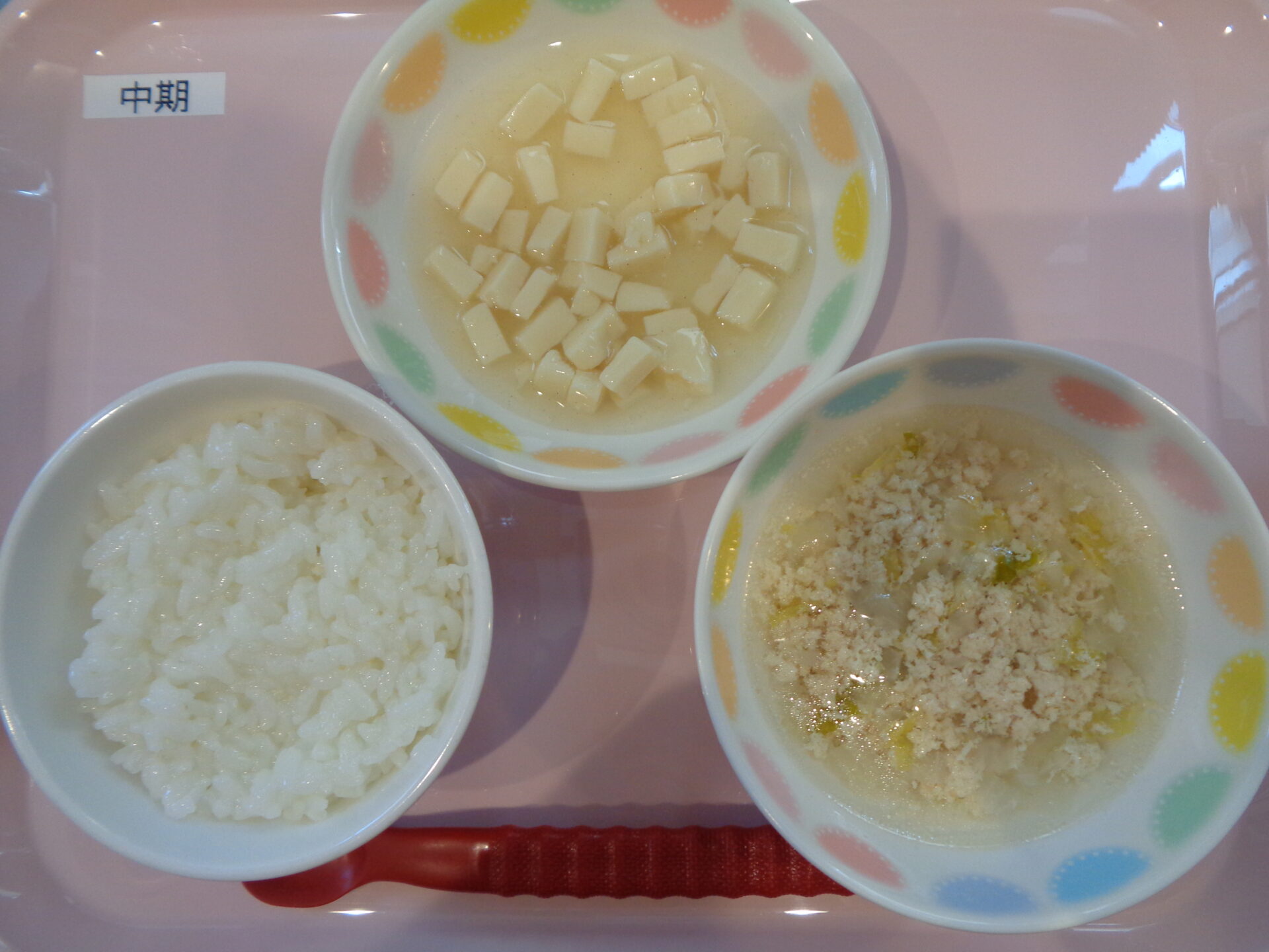 2025.01.30 給食写真 2025年1月30日 ★お誕生日会メニュー★ 【普通食】 コーンツナピラフ・甘辛たれ唐揚げ・人参ときゅうりのマリネ・クリームスープ・ヤクルト 【離乳食・中期】 お粥・豆腐の煮物・鶏のスープ 一覧へ戻る
