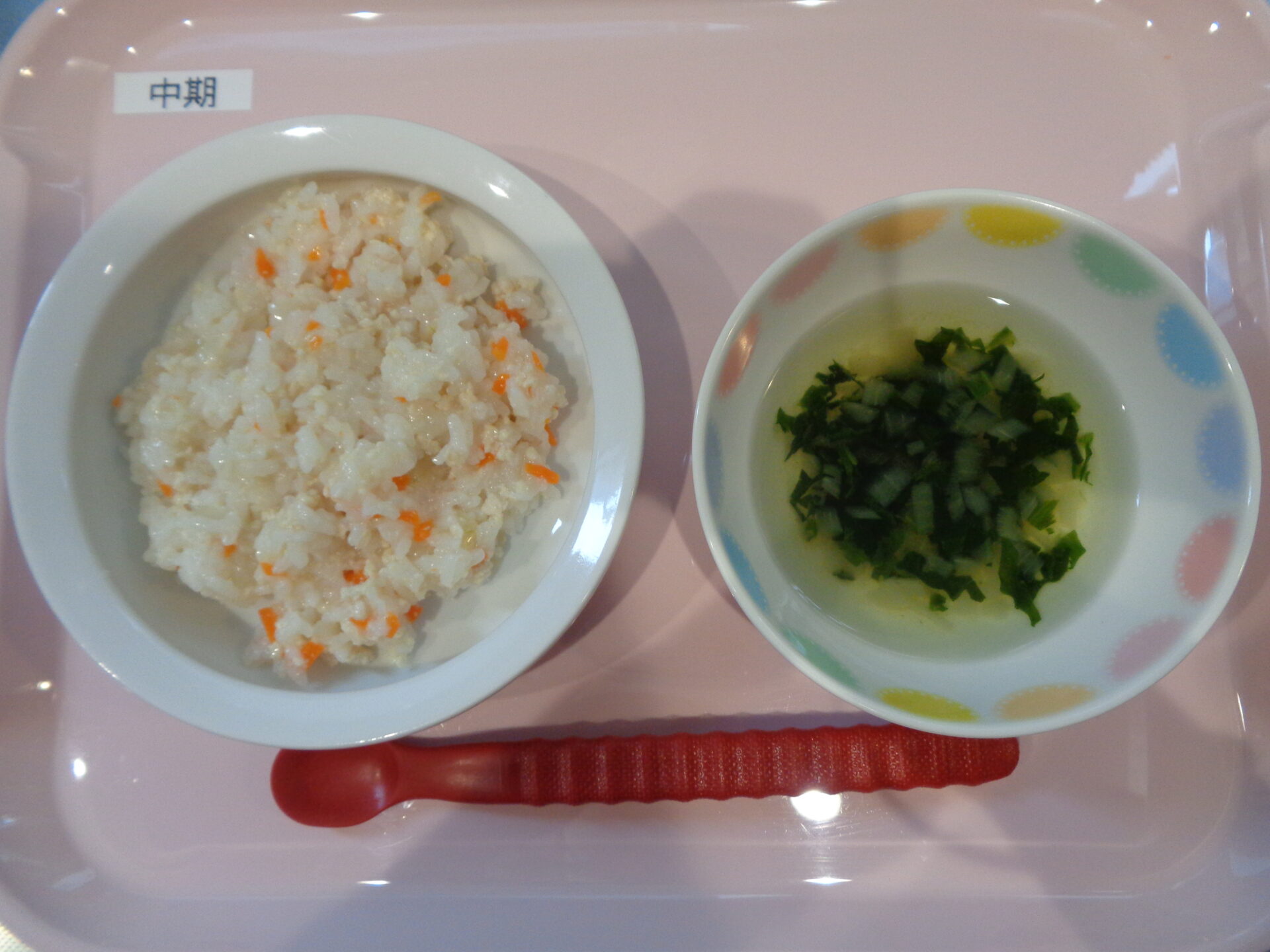 鶏雑炊・ほうれん草のスープ