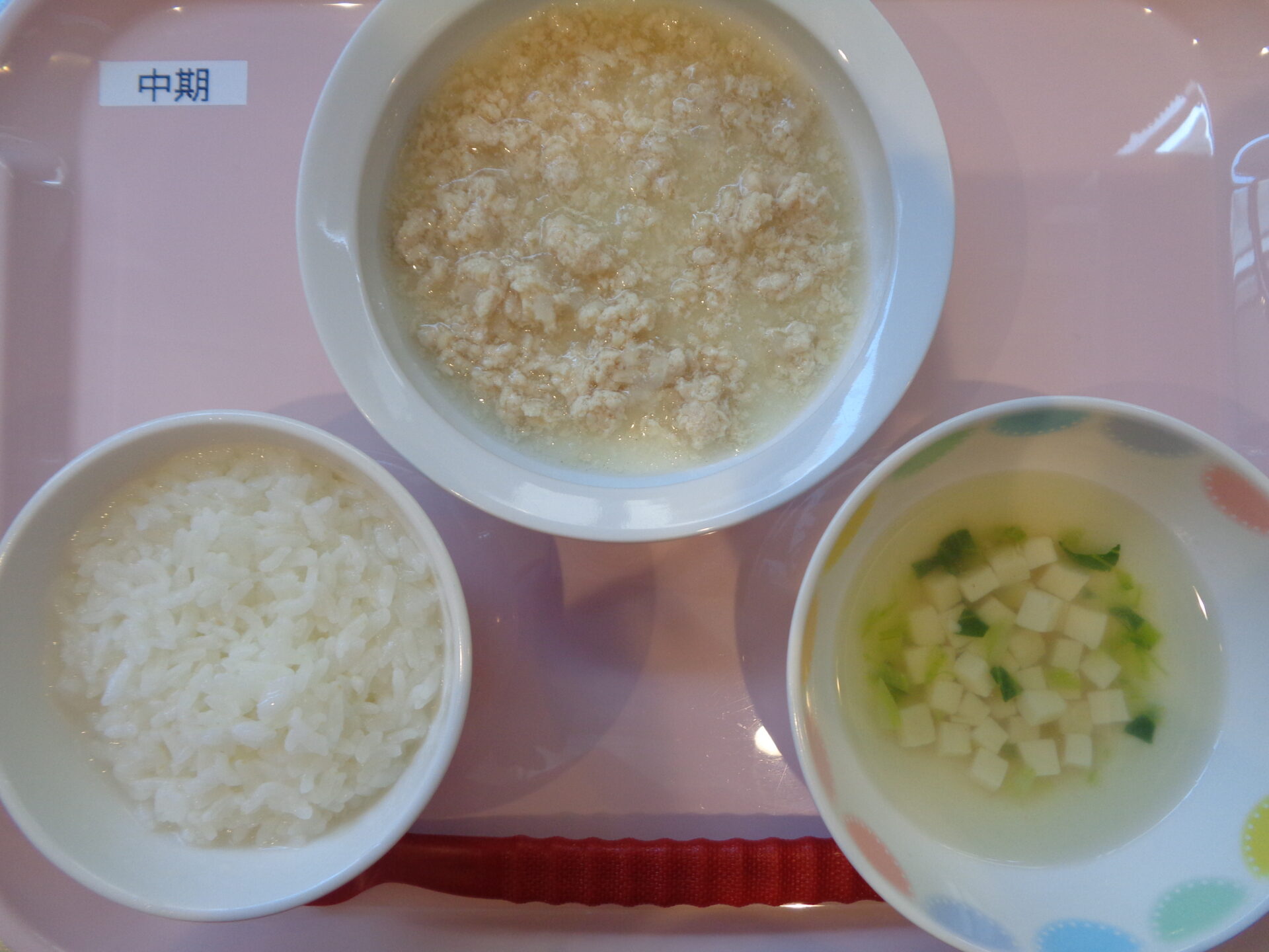2025.02.25 給食写真 2025年2月25日 給食 【普通食】 ごはん・鶏肉の塩麴焼き・大根サラダ・とうふの味噌汁パイン缶・ 【離乳食・中期】 お粥・鶏肉と大根の煮物・豆腐のすまし汁 一覧へ戻る