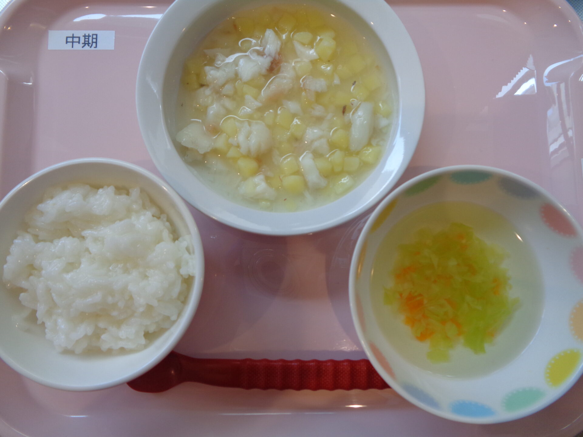 お粥・鯛とじゃがいもの煮物・にんじんスープ