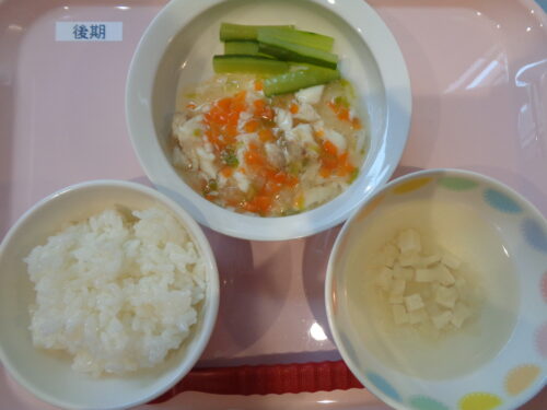 2025.03.04 給食写真 3月4日 給食 【普通食】 ・ごはん ・さわらの煮つけ ・白菜のおかか和え ・豆腐と大根のすまし汁 ・パイン缶 【後期食】 ・軟飯 ・たいと野菜の煮物 ・きゅうりスティック ・豆腐と大根のスープ 一覧へ戻る