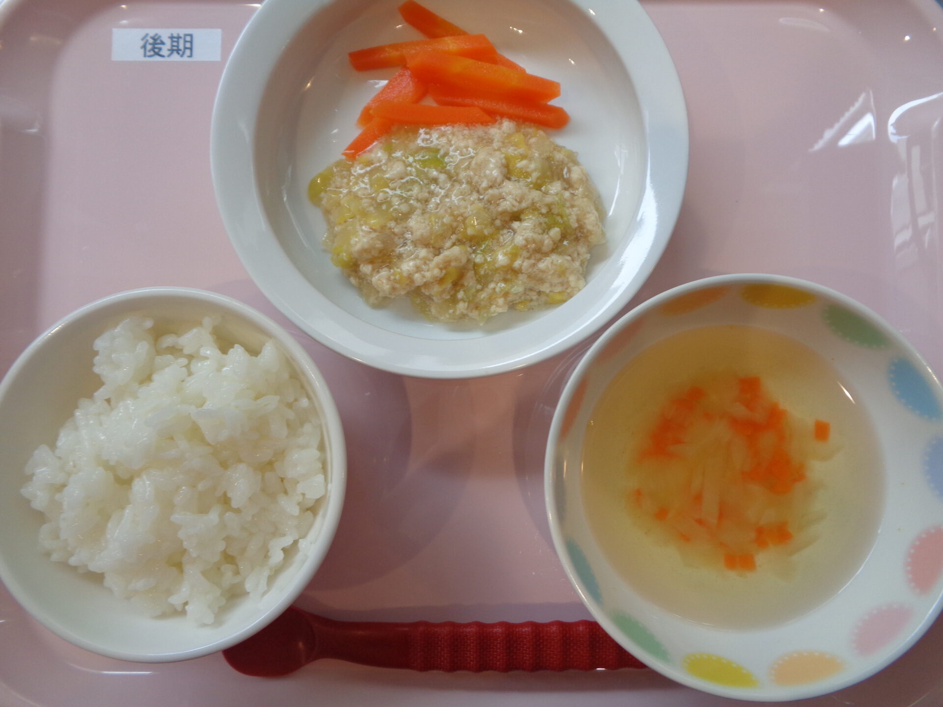 2025.03.13 給食写真 2025年3月13日 給食 【普通食】 ごはん・肉野菜炒め・春雨サラダ・なめこの味噌汁 【離乳食・後期】 軟飯・鶏肉とキャベツの煮物・にんじんスティック・玉ねぎのスープ 一覧へ戻る