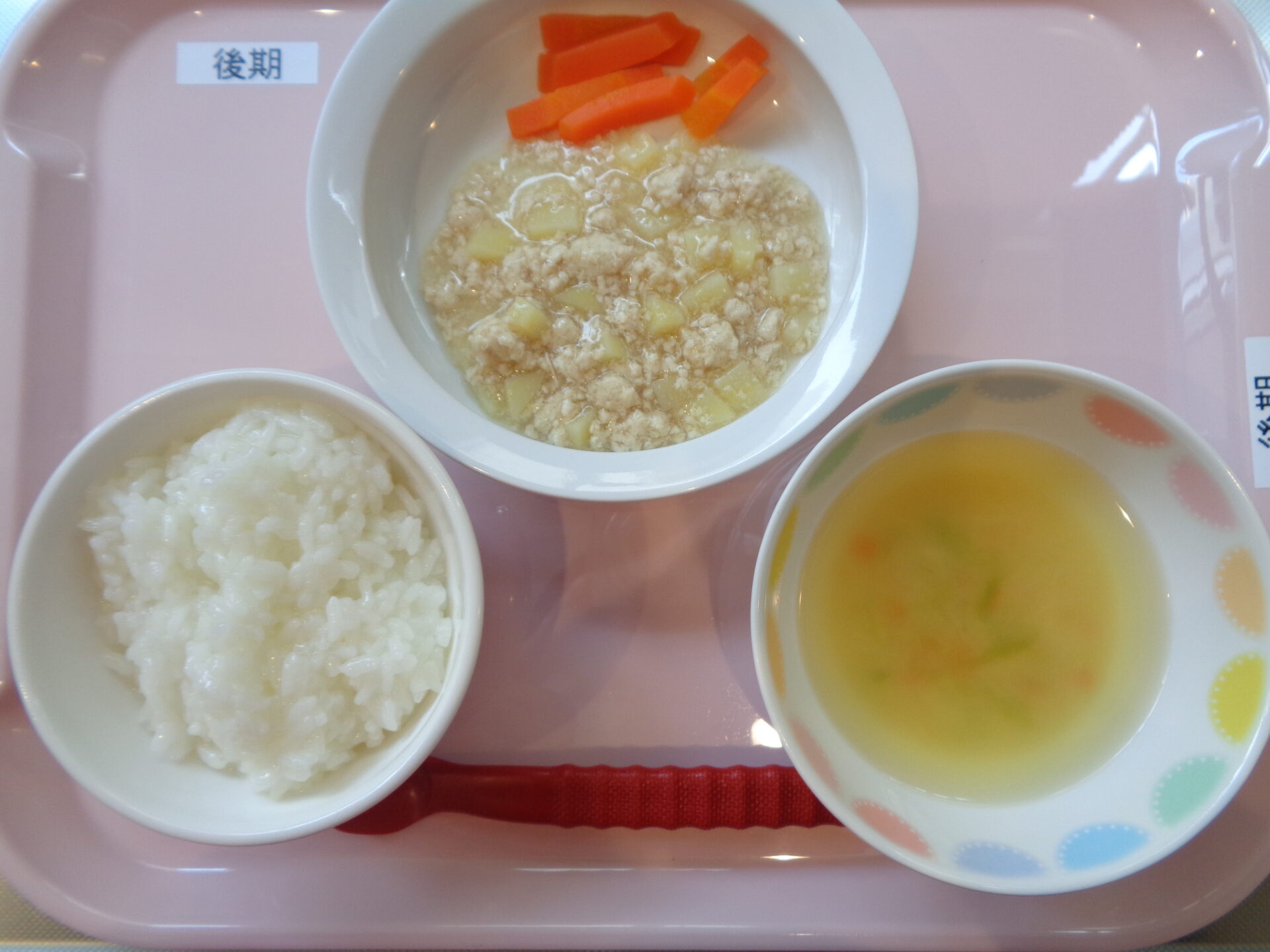 2025.03.17 給食写真 2025年3月17日 給食 【普通食】 鶏肉のマーマレード焼き・切り干し大根煮・じゃが芋とキャベツのスープ 【離乳食・後期】 軟飯・じゃが芋と鶏肉の煮物・にんじんスティック・キャベツの味噌汁 一覧へ戻る