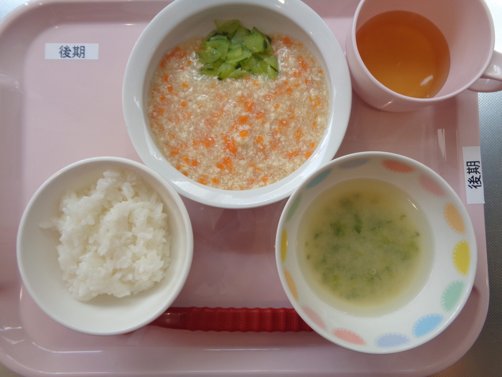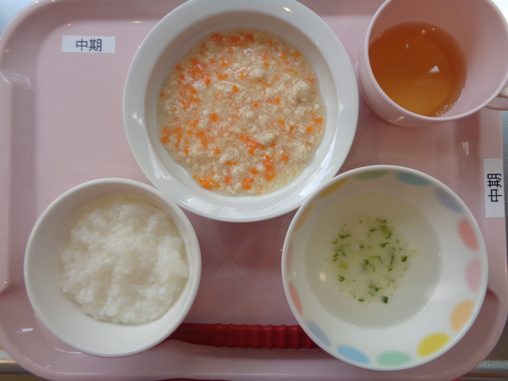 【離乳食・中期】 7倍粥・鶏肉と人参の煮物・チンゲン菜の味噌汁