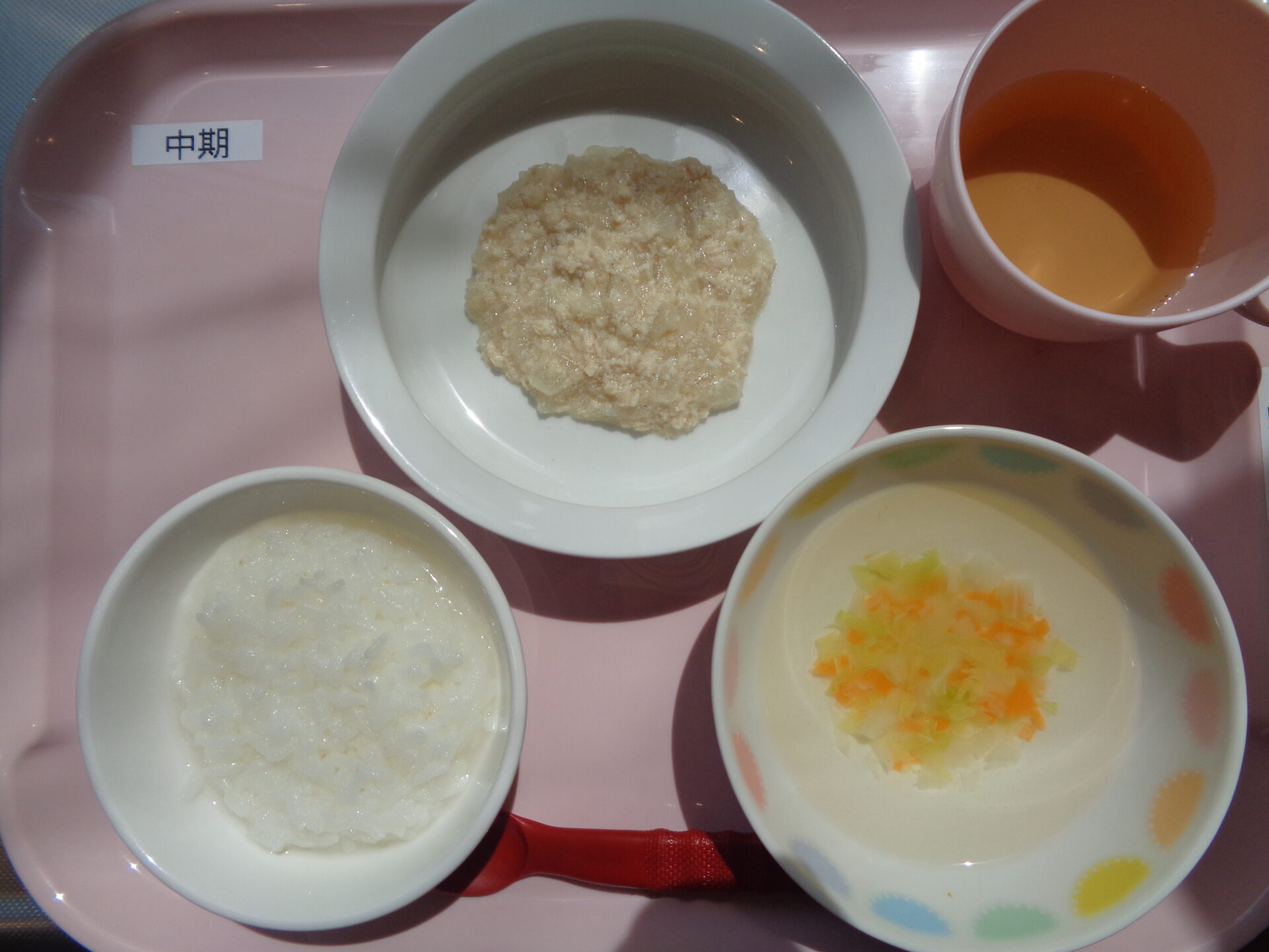 【離乳食・中期】 7倍粥・鶏肉のみそ煮・白菜のすまし汁
