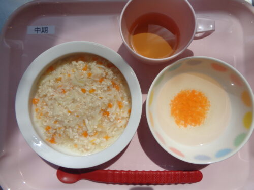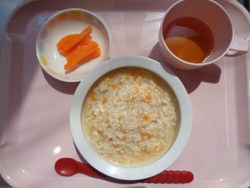 2025.05.13 給食写真 5月13日(火) 【普通食】 五目うどん・ほうれん草のごま和え・パイナップル缶 【離乳食・後期】 煮込みうどん・にんじんスティック 【離乳食・中期】 煮込みうどん・にんじんスープ 一覧へ戻る