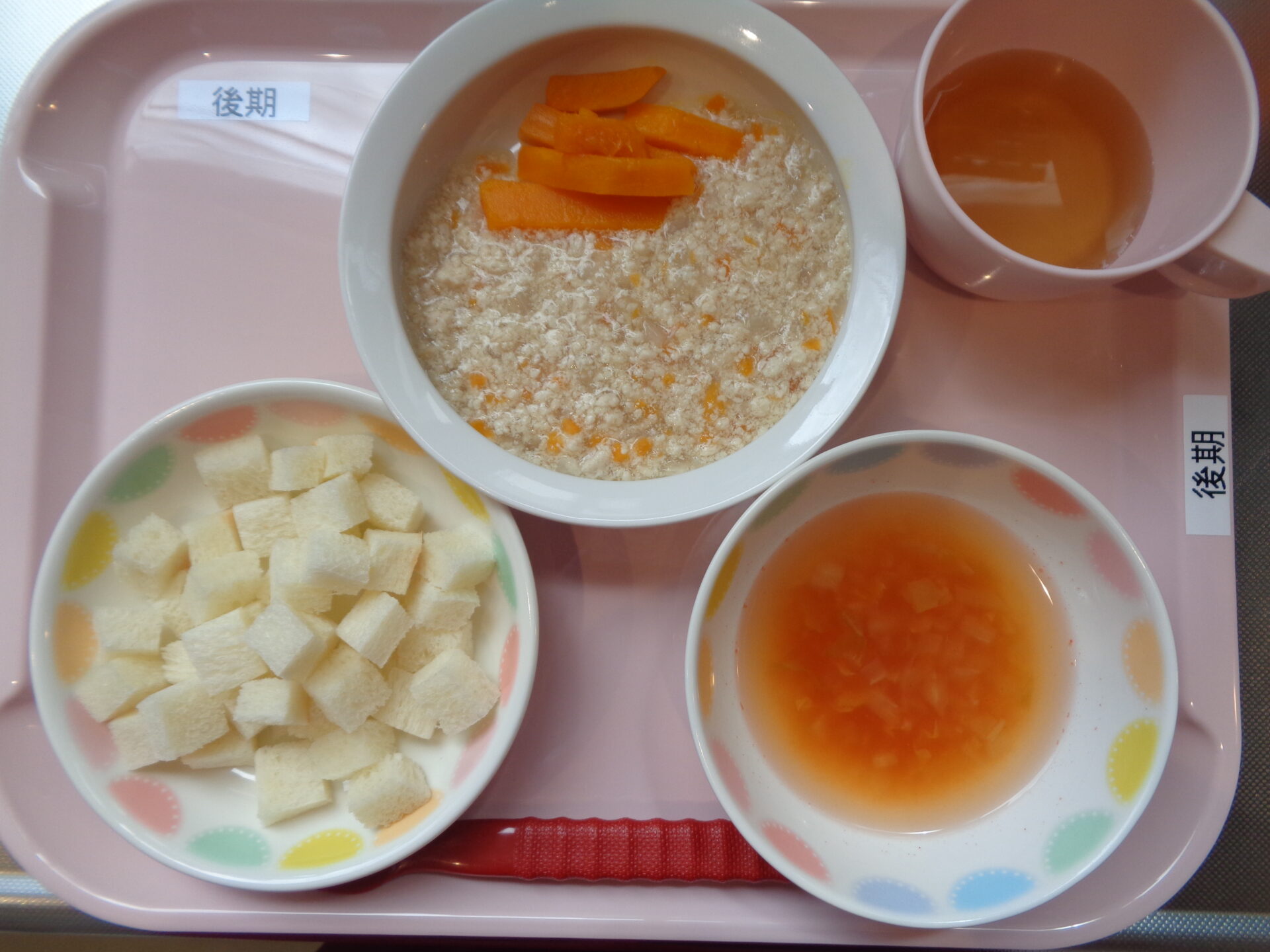 【離乳食・後期】 パン・鶏肉と野菜の味噌煮・かぼちゃスティック・トマトスープ