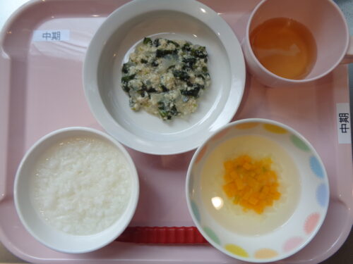【離乳食・中期】 7倍粥・鶏肉とほうれん草の煮物・かぼちゃスープ