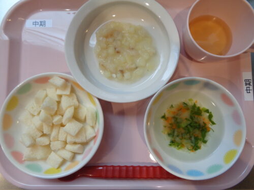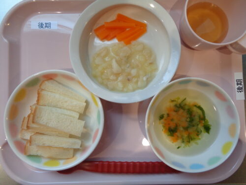 ・食パン ・たらとじゃが芋の煮物 ・にんじんスティック ・野菜スープ