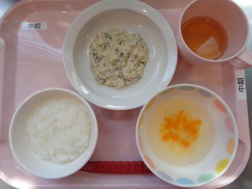【離乳食・中期】 7倍粥・鶏肉と小松菜の煮物・かぼちゃスープ