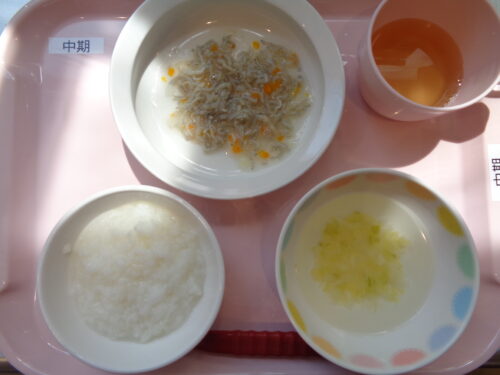 【離乳食・中期】 7倍粥・しらすのうま煮・白菜スープ