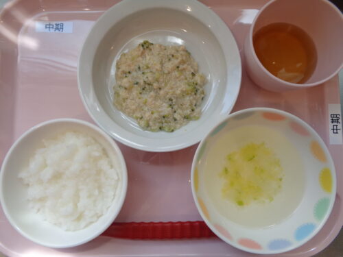 【離乳食・中期】 7倍粥・鶏肉とブロッコリーの煮物・白菜スープ