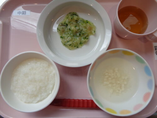【離乳食・中期】 7倍粥・カレイと小松菜の煮物・豆腐のすまし汁