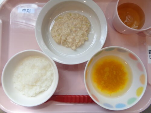 【離乳食・中期】 7倍粥・鶏肉とキャベツの煮物・玉ねぎスープ