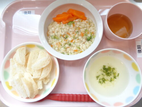 【離乳食・中期】 パン粥・豆腐と野菜の煮物・チンゲン菜スープ