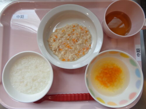 ・7倍粥 ・鶏肉と玉ねぎの煮物 ・かぼちゃスープ