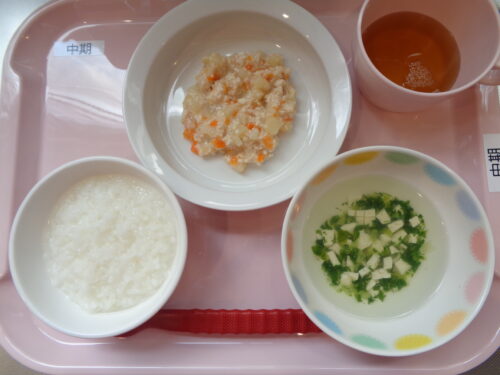 【離乳食・中期】 7倍粥・鶏肉とじゃが芋のうま煮・豆腐スープ