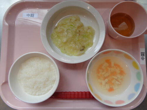 【離乳食・中期】 7倍粥・カレイとキャベツの煮物・豆腐のすまし汁