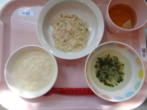 【離乳食・中期】 パン粥・鶏肉と玉ねぎの煮物・ほうれん草スープ