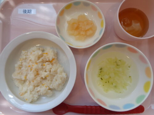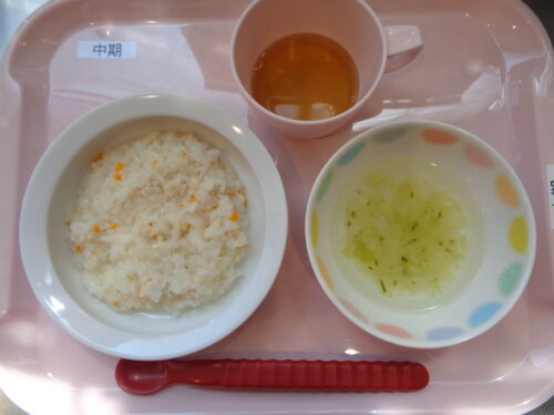 2025.07.28 給食写真 7月 28日(月) 【普通食】 夏野菜のカレー・コーンサラダ・桃缶 【離乳食・後期】 鶏ひき肉雑炊・キャベツスープ・桃缶 【離乳食・中期】 鶏ひき肉雑炊・キャベツスープ 一覧へ戻る