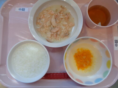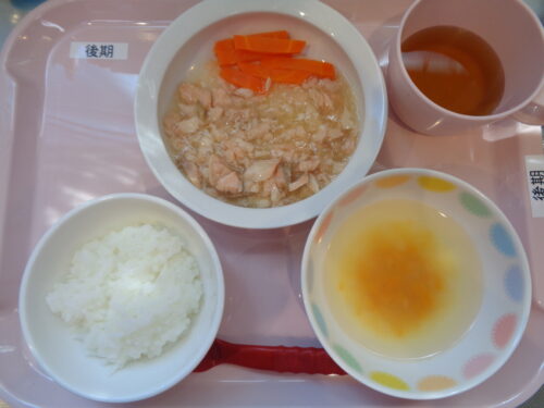 ・7倍粥 ・鮭と玉ねぎの煮物 ・かぼちゃスープ
