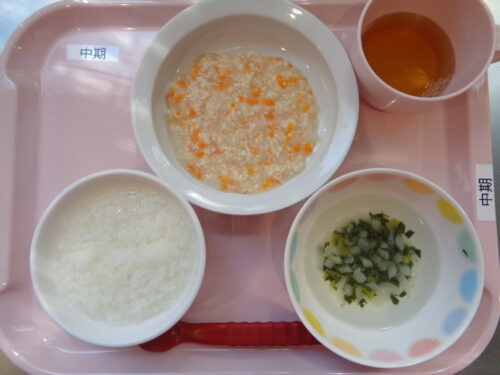 【離乳食・中期】 7倍粥・鶏肉とにんじんのだし煮・小松菜スープ
