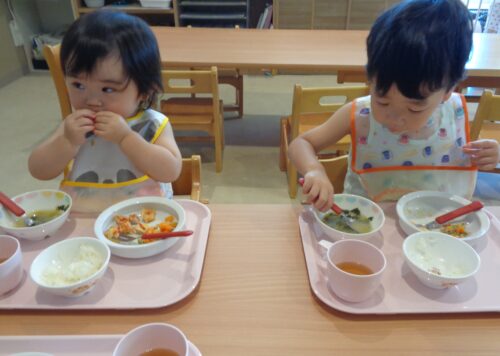 夢中になって食べていた だいち組(1歳児)の子どもたちです。