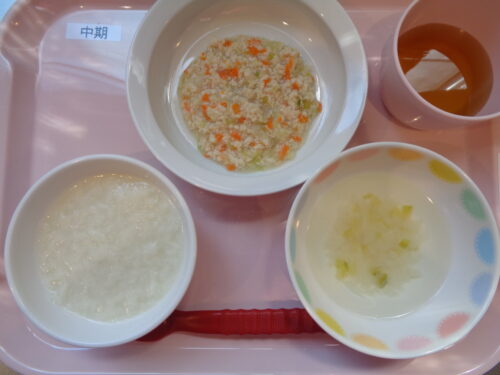 【離乳食・中期】 パン粥・鶏肉とキャベツの煮物・なすのスープ