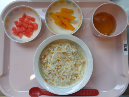 【離乳食・後期】・磯うどん・かぼちゃスティック・すいか