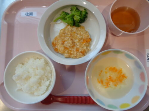 2025.09.26 給食写真 9月 26日(金)~誕生会メニュー~ 【普通食】・ピラフ・ハンバーグ・ブロッコリーとかぼちゃのサラダ・コンソメスープ・ヤクルト 【離乳食・後期】・軟飯・鶏肉とかぼちゃの煮物・ブロッコリースティック・コンソメスープ 一覧へ戻る