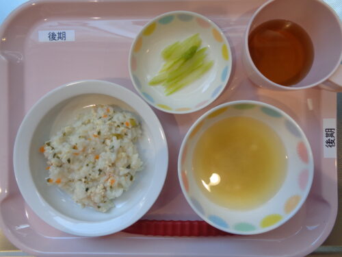 【離乳食・後期】・鶏ぞうすい・アスパラスティック・豆腐の味噌汁