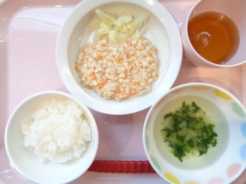 【離乳食・後期】・豆腐と鶏肉の雑炊・カリフラワースティック・小松菜のスープ