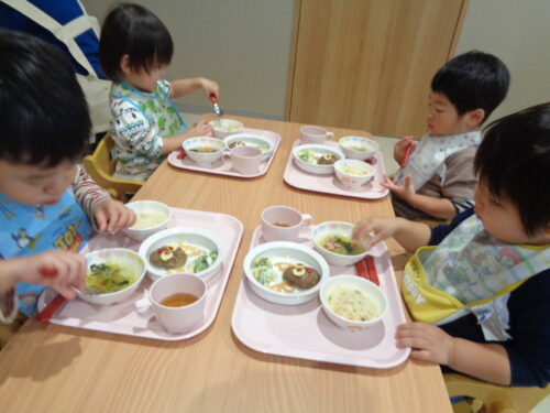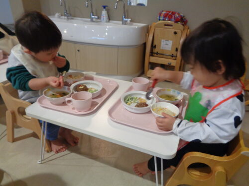 ★0歳児:黙々と食べることに夢中な完了食の子どもたち