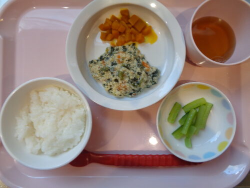 2026.01.13 給食写真 1月13日(火) 【普通食】 ・野菜ラーメン ・かぼちゃサラダ ・フルーツゼリー 【後期食】 ・軟飯 ・鶏肉とほうれん草の煮物 ・かぼちゃの煮物 ・きゅうりスティック 一覧へ戻る