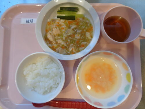 2026.01.14 給食写真 1月14日(水) 【普通食】・ご飯・さわらのゆかり焼き・ひじきと大豆のサラダ・大根の味噌汁 【離乳食・後期】・軟飯・鮭とキャベツの煮物・きゅうりスティック・大根の味噌汁 一覧へ戻る
