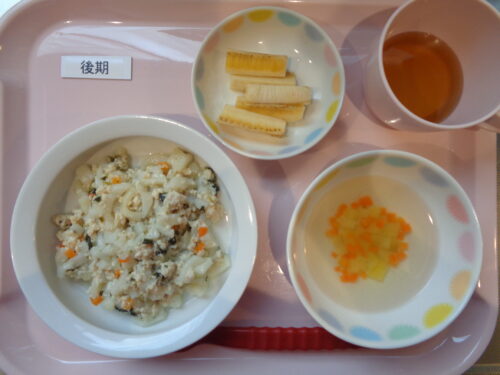 【離乳食・後期】・煮込みうどん・さつまいもスープ・バナナ