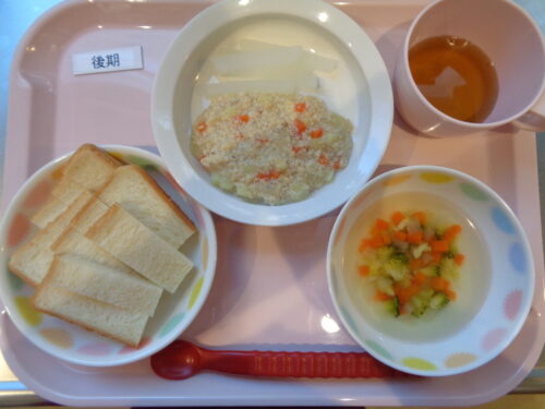 2026.02.17 給食写真 2月17日(火) 【普通食】・ロールパン・クリームシチュー・大根のマリネサラダ・フルーツゼリー 【離乳食・後期】・パン・鶏肉とじゃがいものうま煮・大根スティック・ブロッコリースープ 一覧へ戻る