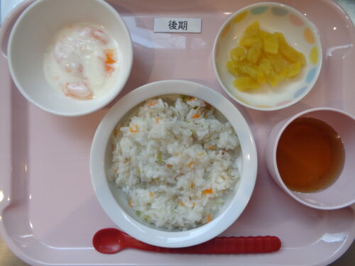 【離乳食・後期】・しらす中華粥・さつま芋スティック・みかんヨーグルト